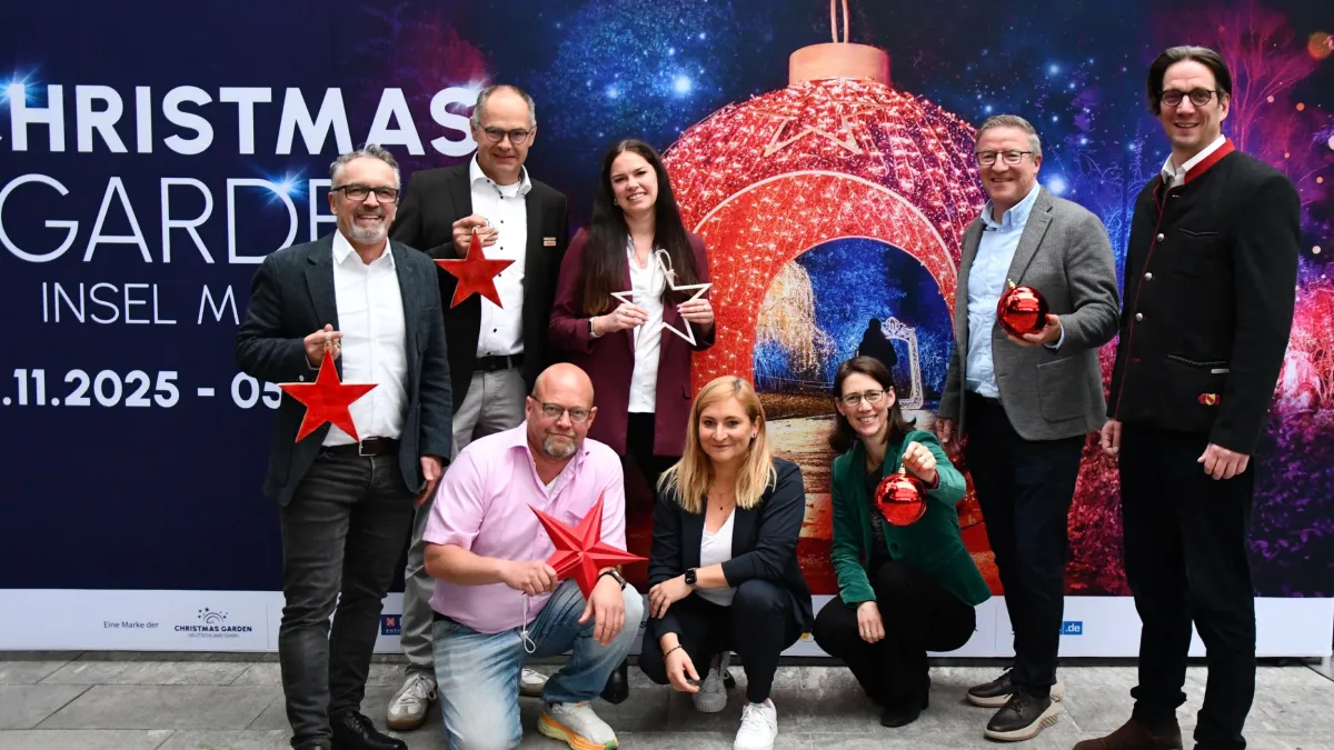 (v. l. n. r.) Franz Petzold (Leiter Marketing und Vertrieb Mainau GmbH), Mainau-Gartendirektor Markus Zeiler, Andreas Holl (Technischer Leiter C² CONCERTS GmbH), Carolin Toelstede (Projekt Managerin Event Christmas Garden Deutschland GmbH), Melanie Becker (Prokuristin C² CONCERTS GMBH), Mainau-Geschäftsführerin Bettina Gräfin Bernadotte, Christian Doll (Geschäftsführer C² CONCERTS GMBH und Mainau-Geschäftsführer Björn Graf Bernadotte freuen sich auf die fünfte Ausgabe des Christmas Garden Insel Mainau.